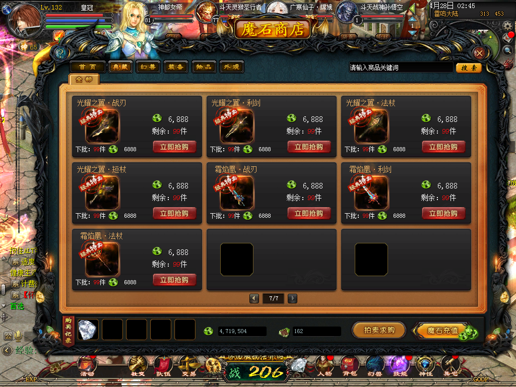 VIP7每日领取9星副本钥匙1个+精致月光贵族经验外套1小时(赠)4个。