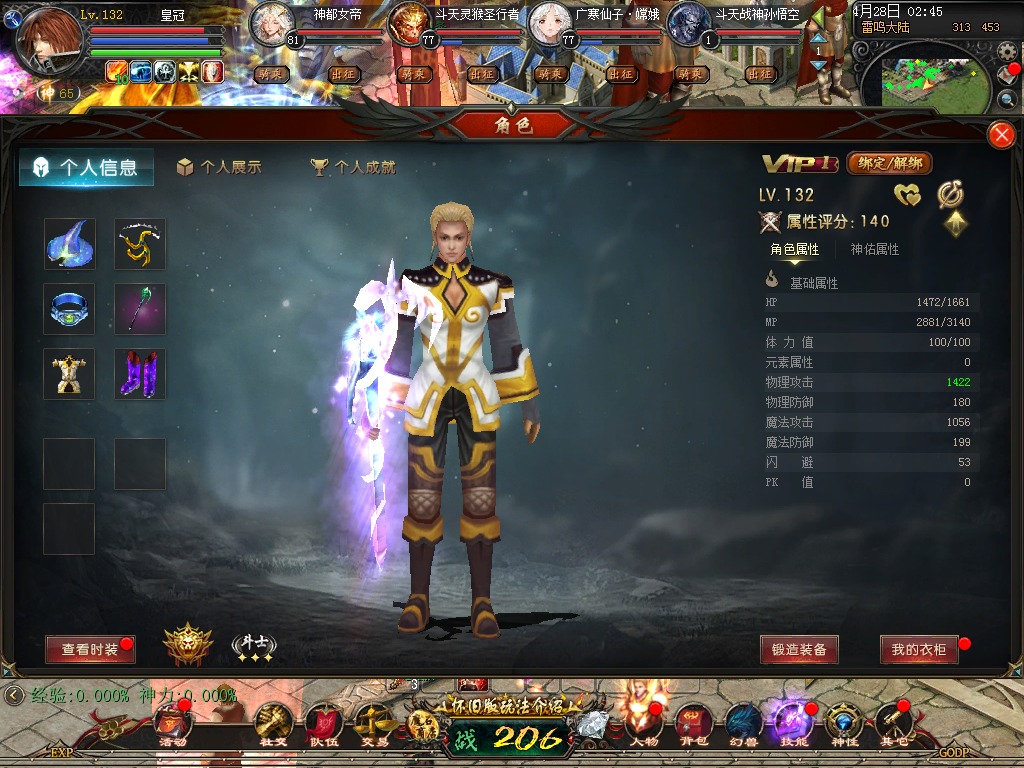 VIP4每日领取1星副本钥匙2个+精致月光贵族经验外套1小时(赠)1个。