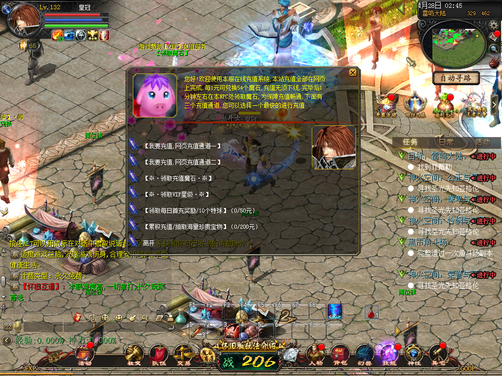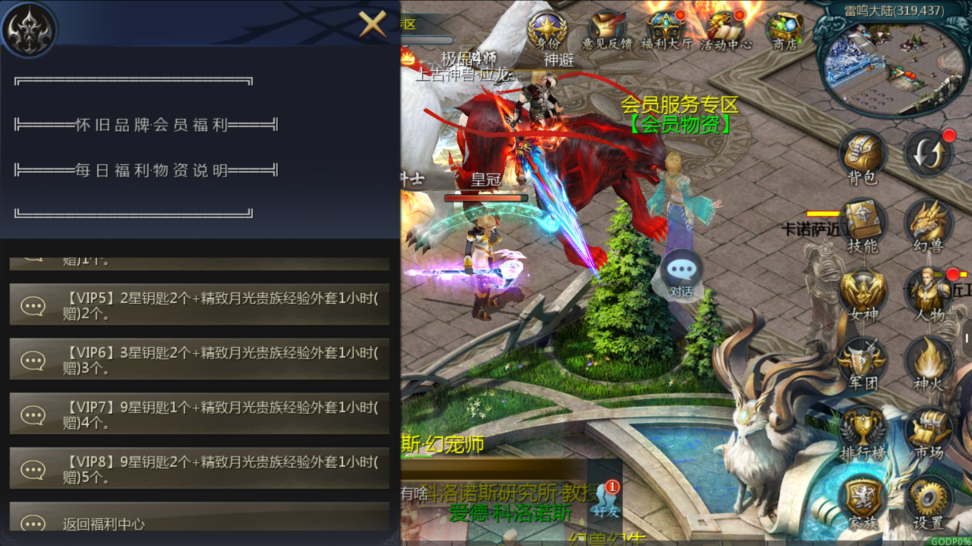 累计2000元VIP8可领取以下物品白品地+20魔魂+12战魂+5初级装备一套,可以进入VIP8及VIP8以下地图·