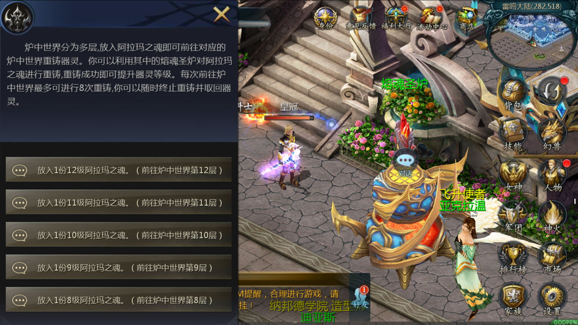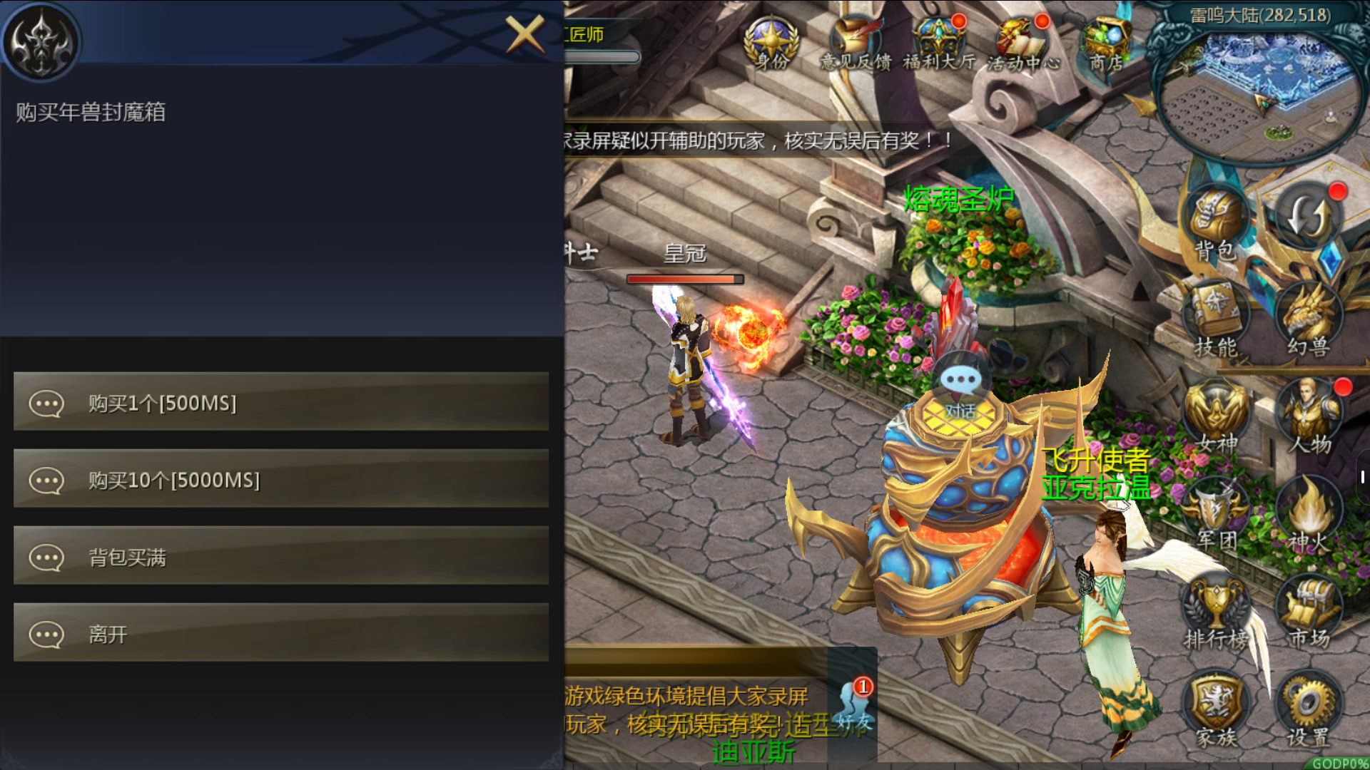 游戏介绍:土豪120级前(5个灵魂升一级)120级(一个灵魂王升一级)白嫖平民迷宫。 幻兽介绍:增值定制宝宝业务………魔石商城,金币商城自行挑选喜欢的宝宝